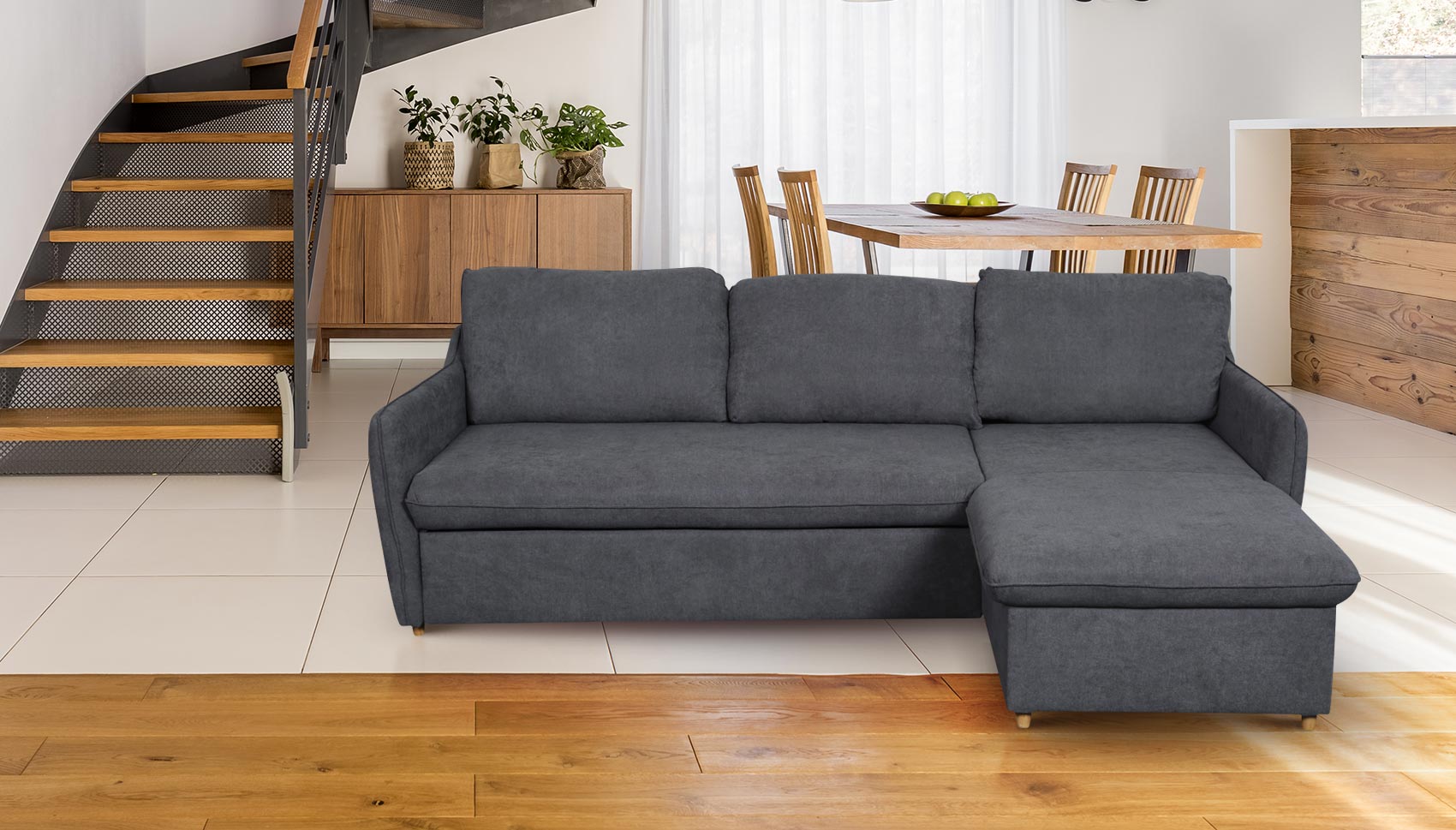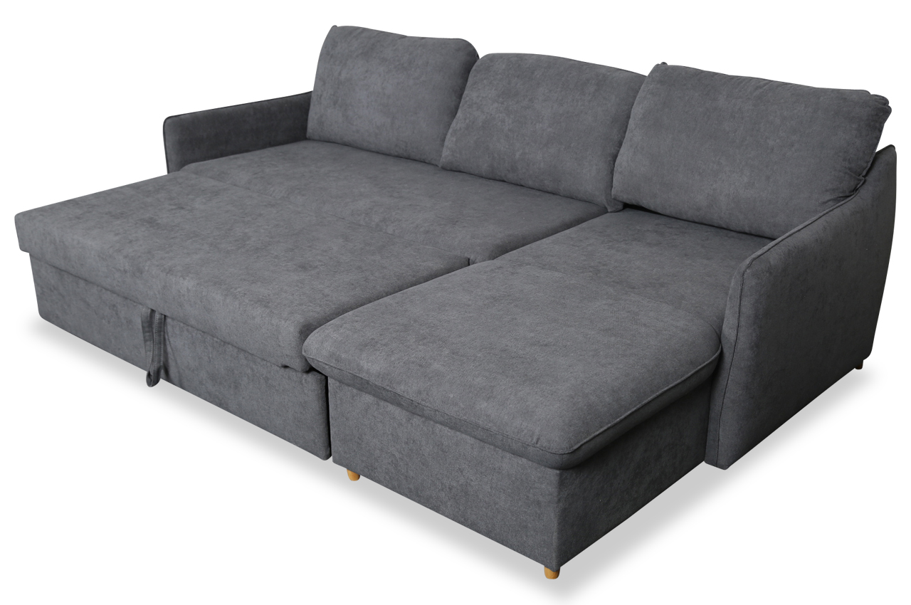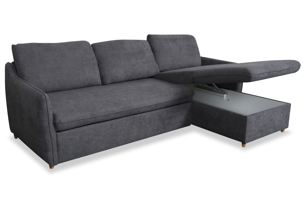 Eckgarnitur Jolyne-P rechts - mit Schlaffunktion - Dunkelgrau